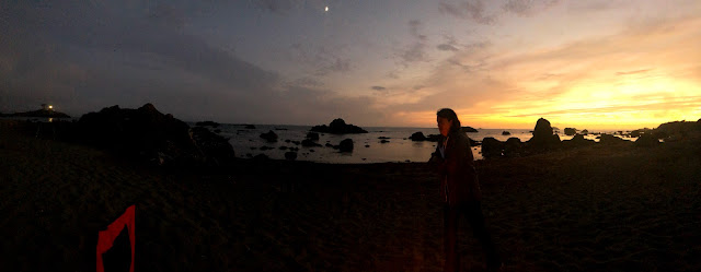 | Our parking spot at Canon Beach. We hoped to spend the night here, but a policeman told us we couldn't. He also told us that as soon as we got out of city limits, the side of the road was fair game. |